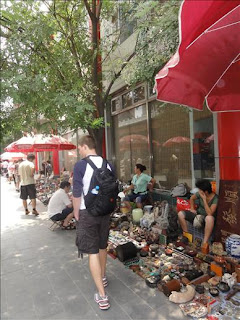 Last Saturday (Day two in Beijing), we made an attempt at waking up early so that we could get over to Tiananmen Square in time before Mao's Mausoleum closed for the day at noon. But with very little success (we were pretty beat from the traveling and lack of sleep the day before), we opted to head to the Beijing Antique Market instead. It's basically a big outdoor market with hundreds of shopkeepers selling all kinds of antique goodies. Chinese souvenirs galore! Ibbi, Paul, and myself spent about 3 hours there, browsing almost every possible shop, bargaining like crazy, and we all left with various Chinese gifts to take home. It was time well spent, and we got a ton of great deals.